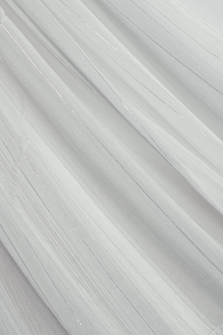 from the finest, lightweight chiffon fabric. Delicately adorned with shimmering